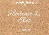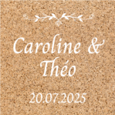 Il est également possible de sélectionner un modèle de sticker sur mesure avec un fond imitant le bois ou le liège, ce qui s'accordera parfaitement avec la décoration champêtre de votre réception.